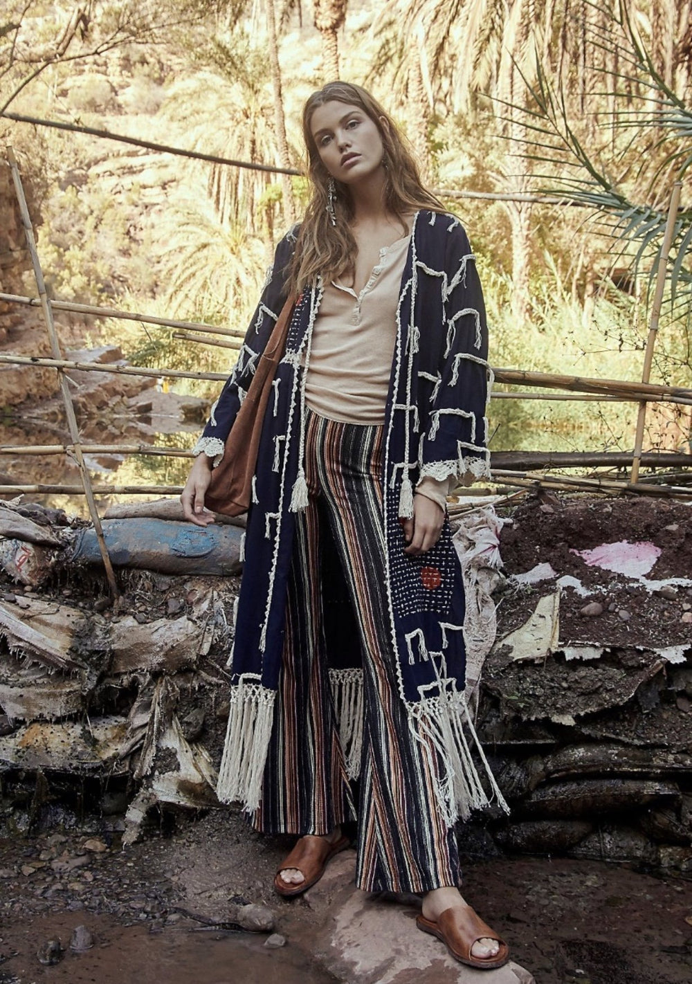 Style Notes: Not a big fan of denim? No problem. Simply style your new cover-up much like Maria Bernad did, by choosing tonal colours top to toe and letting your kimono do all the talking.